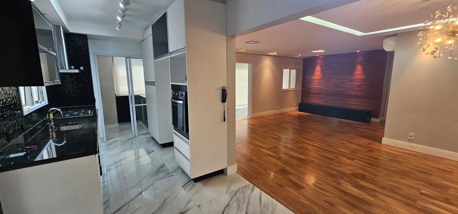 Apartamento de alto padrão com 147 metros de planta sendo 3 dormitórios, todos suítes, além de lavabo. O imóvel conta com cozinha americana equipada com móveis planejados, forno e cooktop, proporcionando praticidade e sofisticação. Os dormitórios também possuem móveis planejados, e o grande destaque fica por conta da varanda gourmet com churrasqueira a carvão, ideal para momentos de lazer e confraternização.